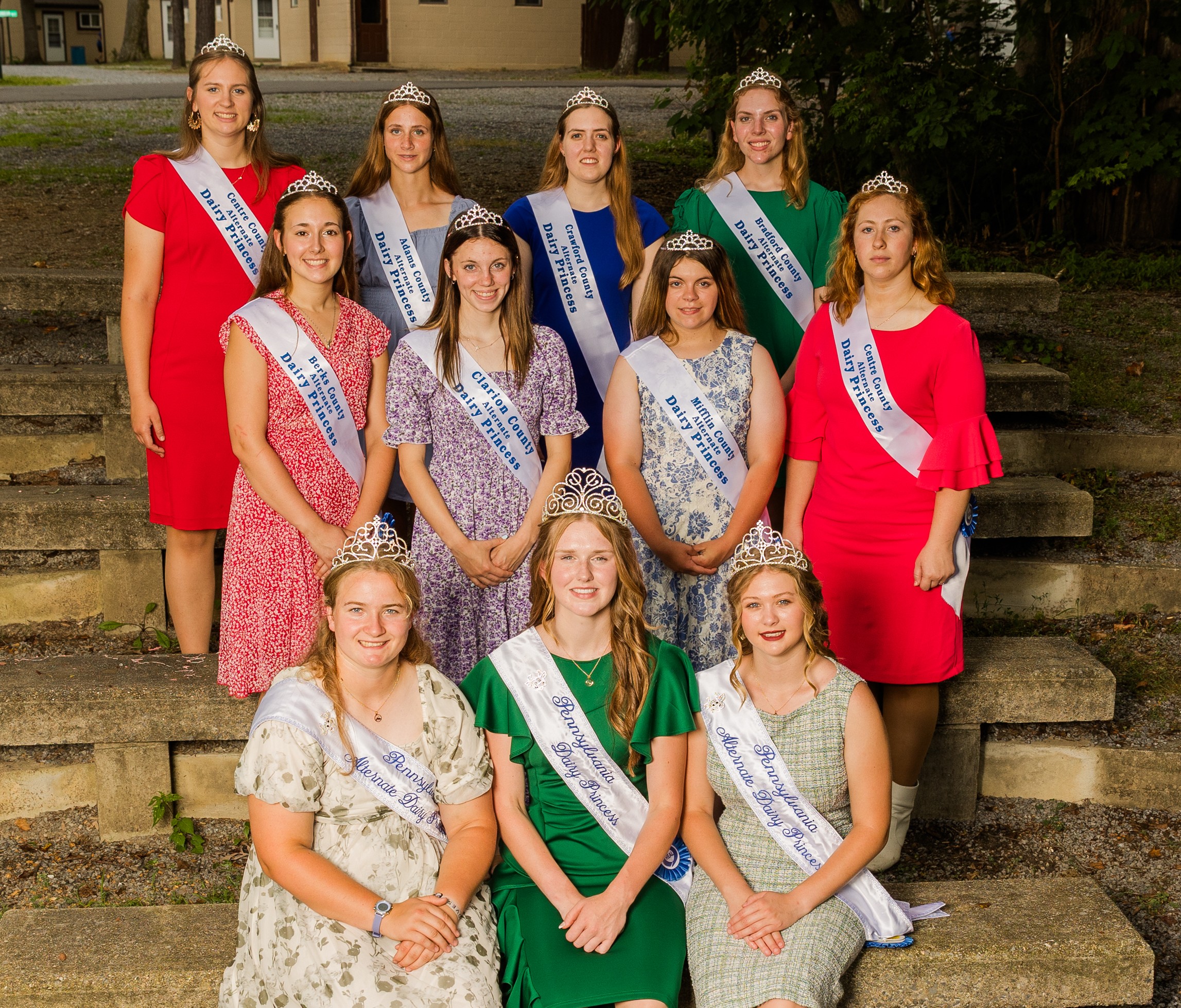 Below are the county princesses and alternates across the state. The pictures were taken at the 2024 dairy princess training seminar at Roxbury Holiness Camp in Orrstown, PA.
