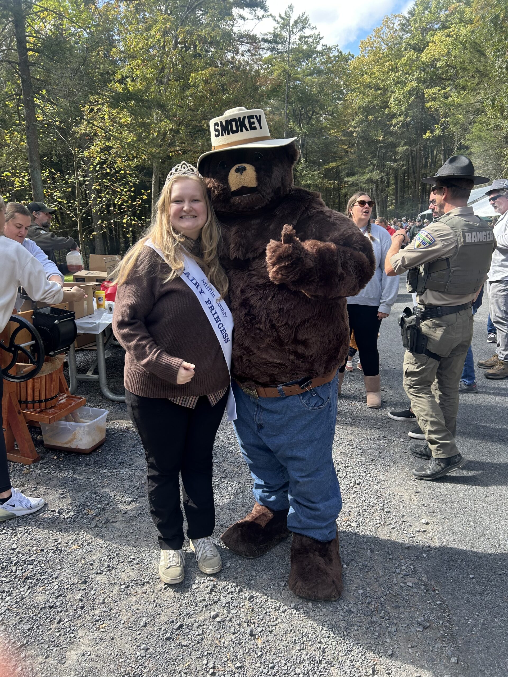 Mifflin County Dairy Princess Jenna Stringer meets Smokey the Bear during an event.