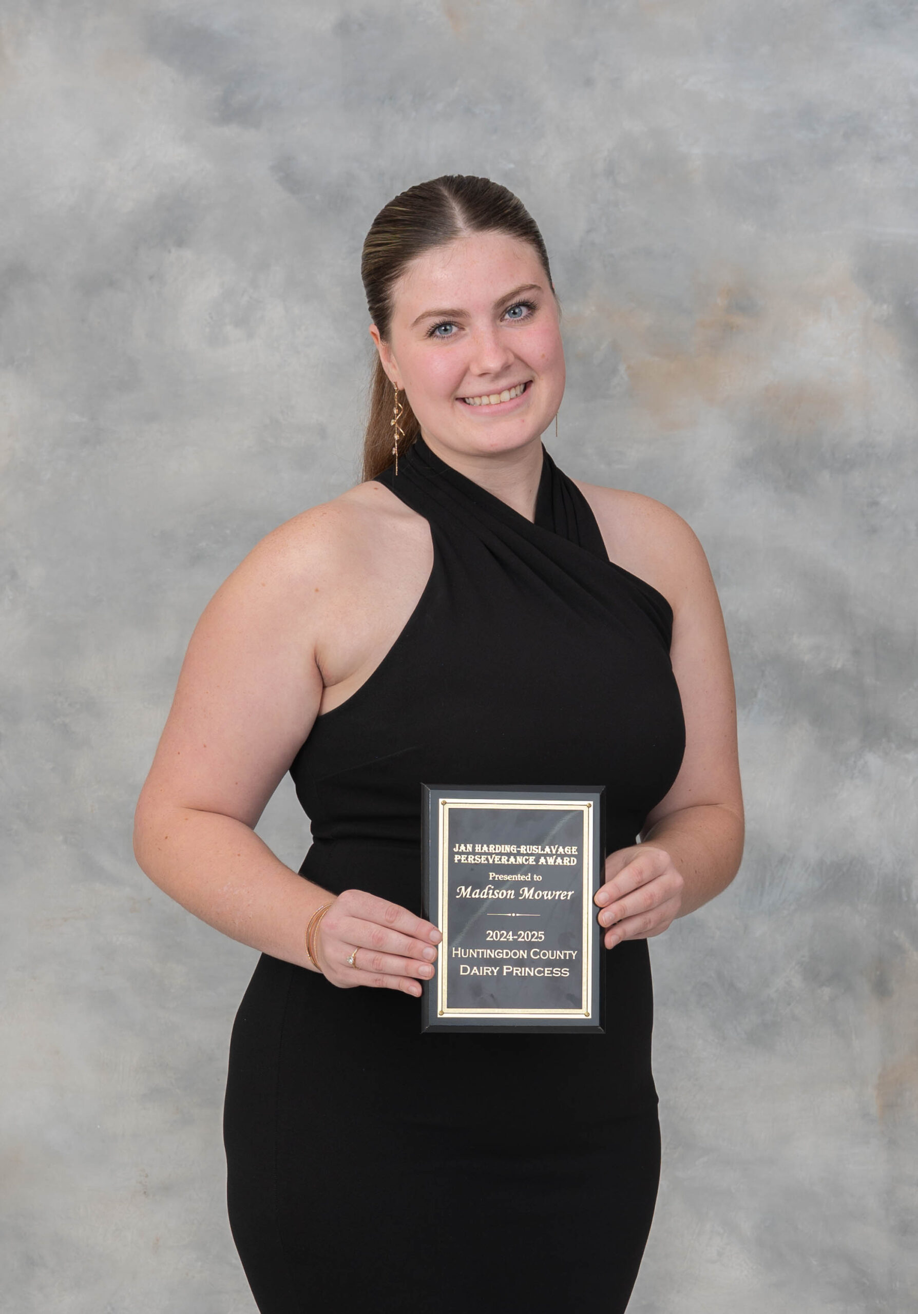 The Jan Harding Ruslavage Perseverance Award recognizes one county princess who has achieved second level incentives within her county while accomplishing the highest percentage of involvement in the county promotions. This award is to encourage county princesses to be the leaders of dairy promotions, excel in dedication and persevere through challenges of school, church, and other community engagements while representing and being a voice for the dairy industry.