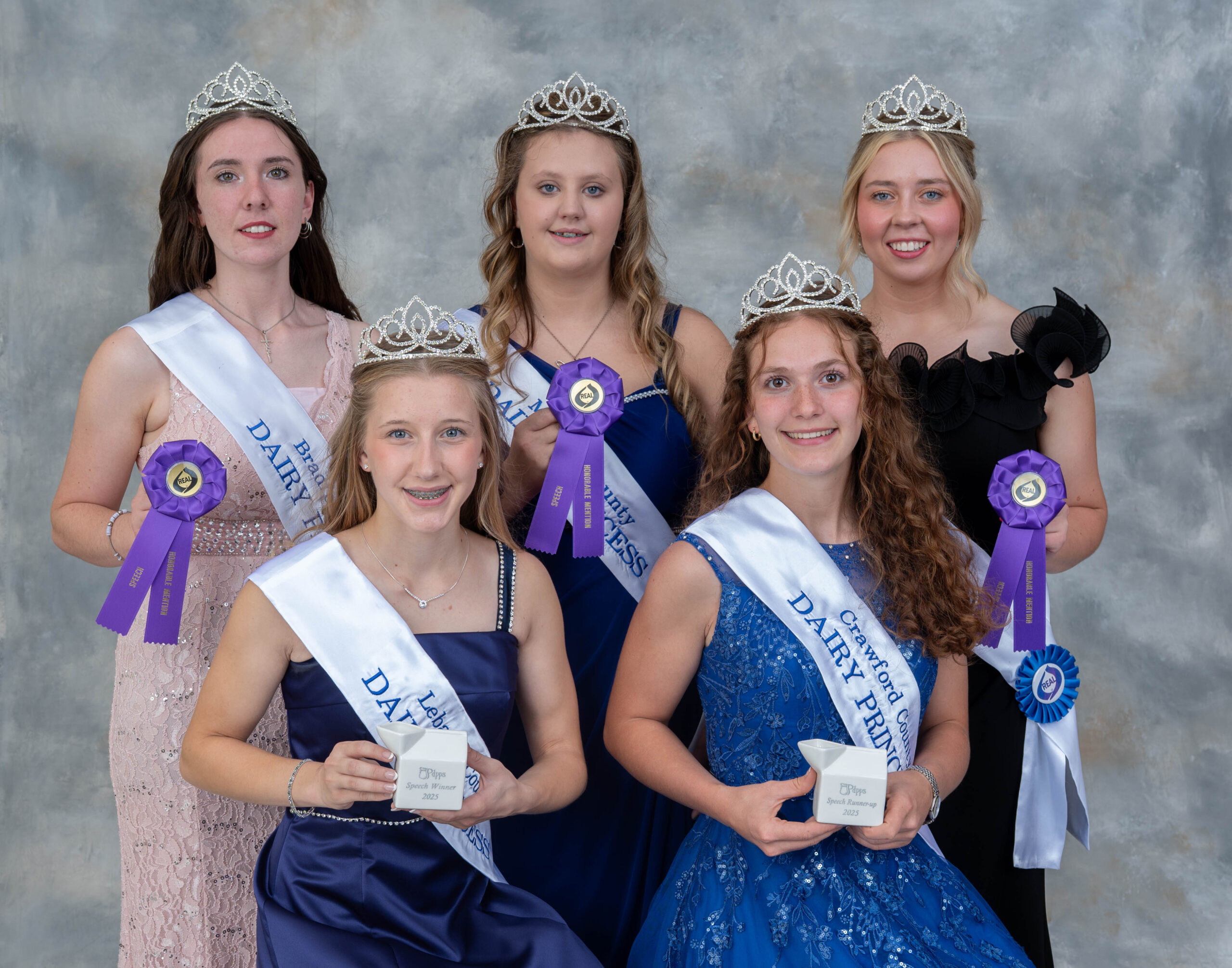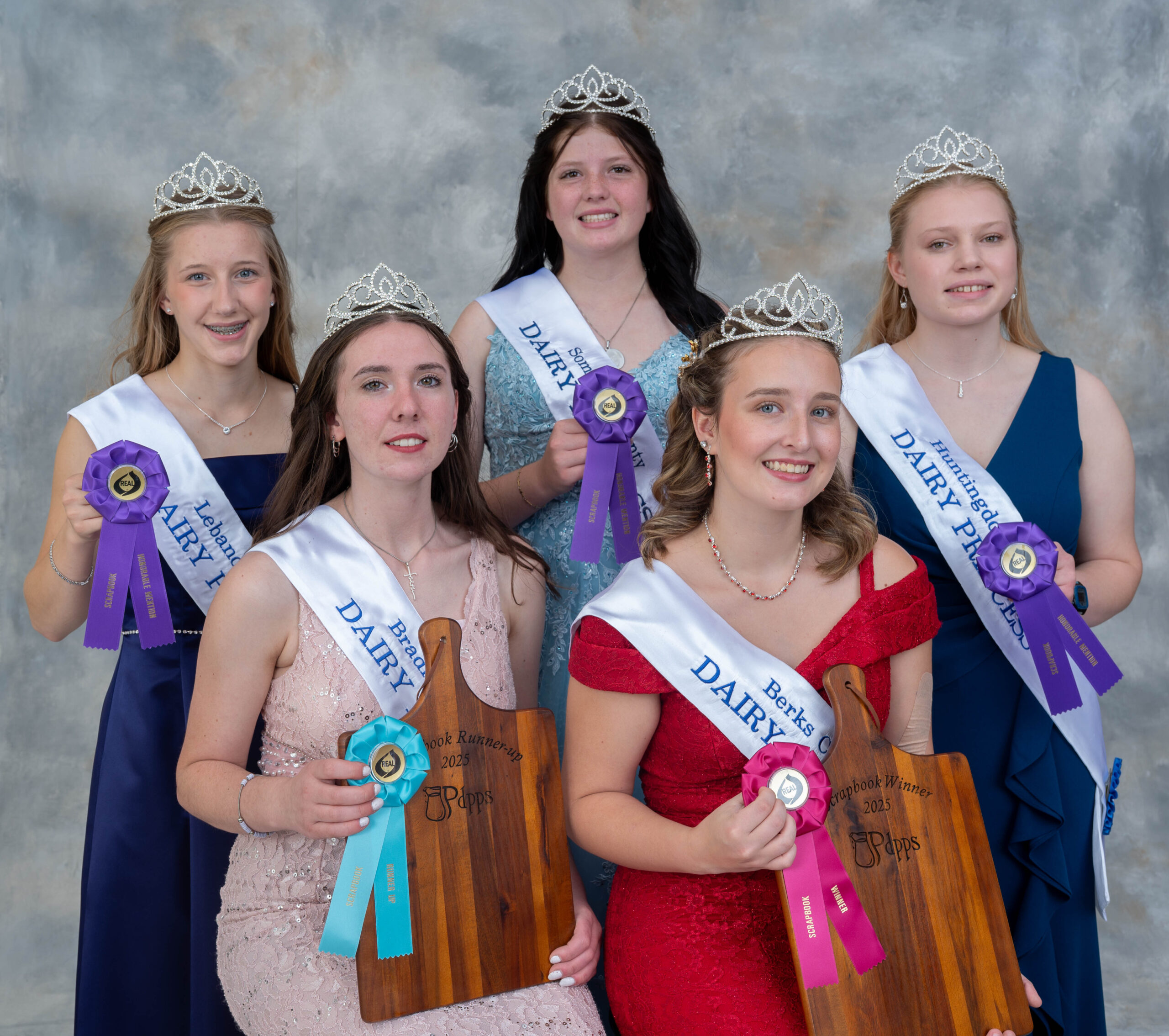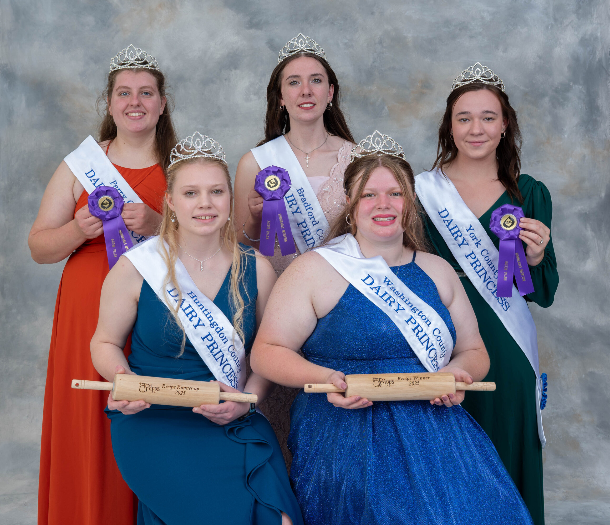 The 69th annual Pennsylvania Dairy Princess Competition was held on Saturday September 20, 2025. Each county princess was individually interviewed and participated in other informal meetings with the judges. They each presented their dairy skit presentations, speeches and poster display, tested on their dairy promotion knowledge and submitted three dairy recipes. In addition, some participated in the radio spot and scrapbooks contests. Below are pictures of the winners, runner-ups and honorable mentions from the contests.