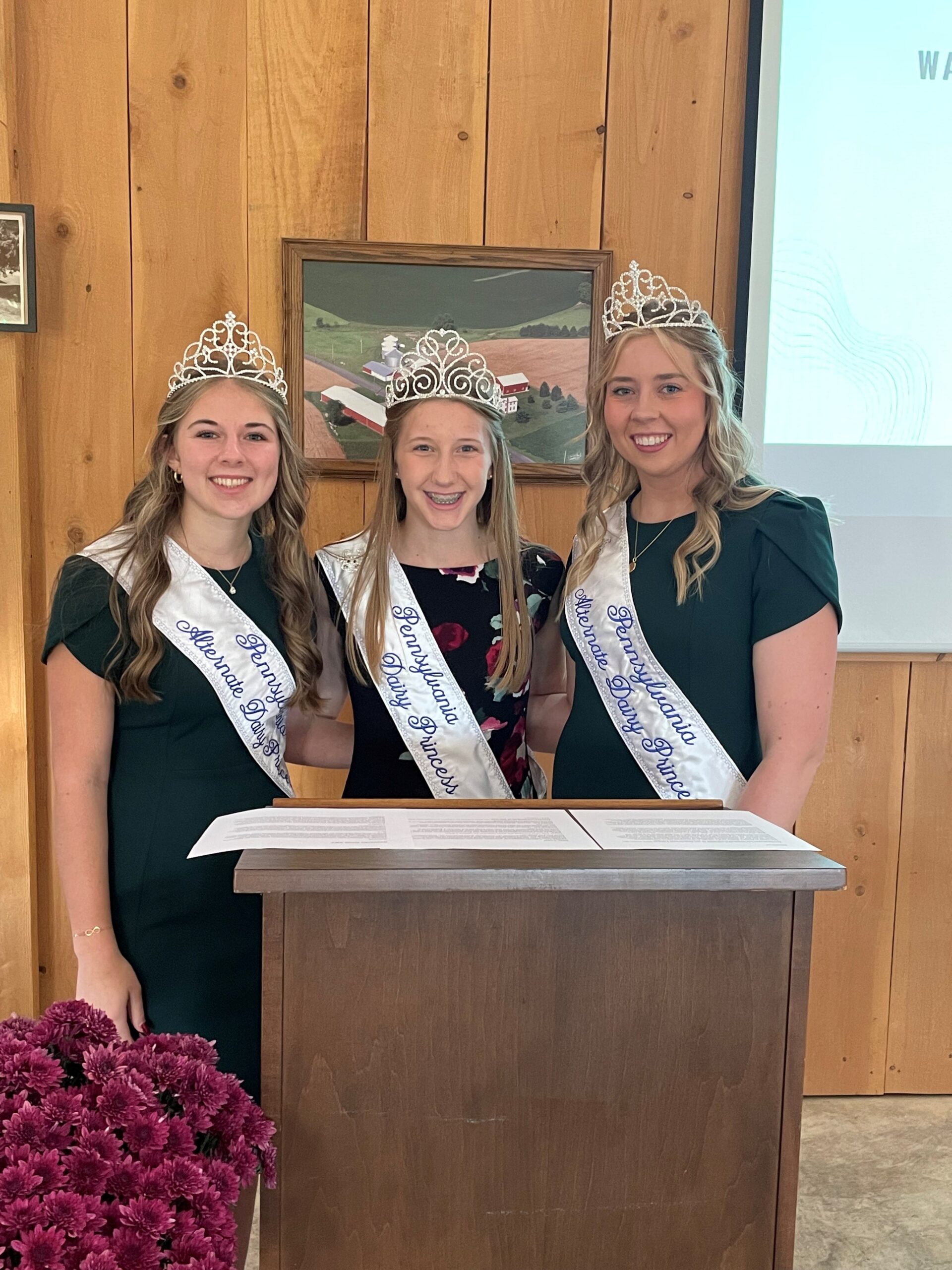Each year, PDPPS chooses three county princesses to be the new state royalty team at the annual state princess pageant. The princesses are judged on public speaking, dairy industry knowledge, poise and personality. Each princess prepared a speech, skit presentation, poster display promoting milk and dairy foods; took a dairy promotion knowledge test; submitted a dairy food recipe and participated in an interview with a panel of three judges. Submitting a scrapbook of promotion activities or a 30-second radio spot are optional.